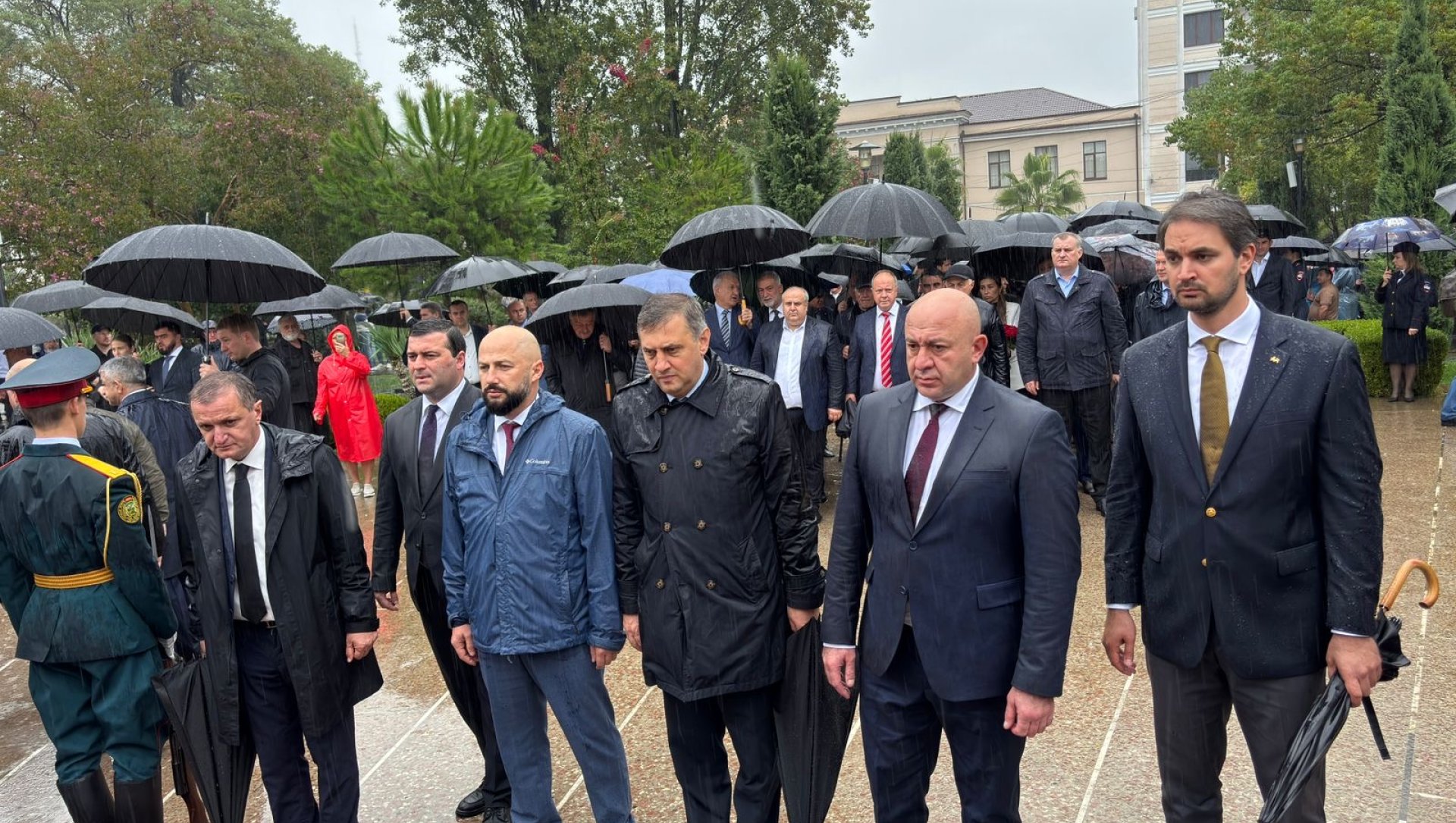 Делегация Южной Осетии во главе с Председателем Правительства Константином Джуссоевым приняла участие в церемонии возложения цветов к мемориалу погибшим в Отечественной войне народа Абхазии.