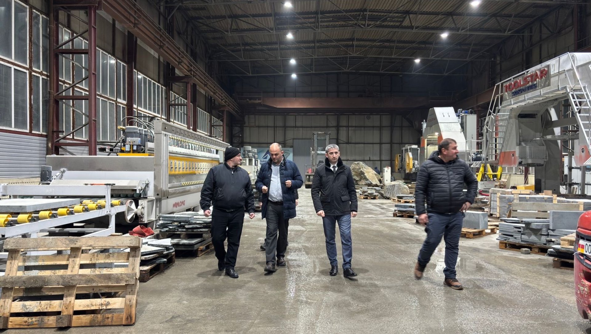 «На данный момент завод производит плиты, фасадную и интерьерную облицовку, брусчатку, бордюры, архитектурные элементы, ритуальные изделия. Работаем с собственным серо-зелёным гранитом, в перспективе — розовый мрамор и новый камень «Эссексит». Разработка месторождений ведётся на территории Южной Осетии. Запасы подтверждены, добыча стабильная. Параллельно изучаем новые участки для расширения линейки камня», — сообщил Тадиоз Кочиев.