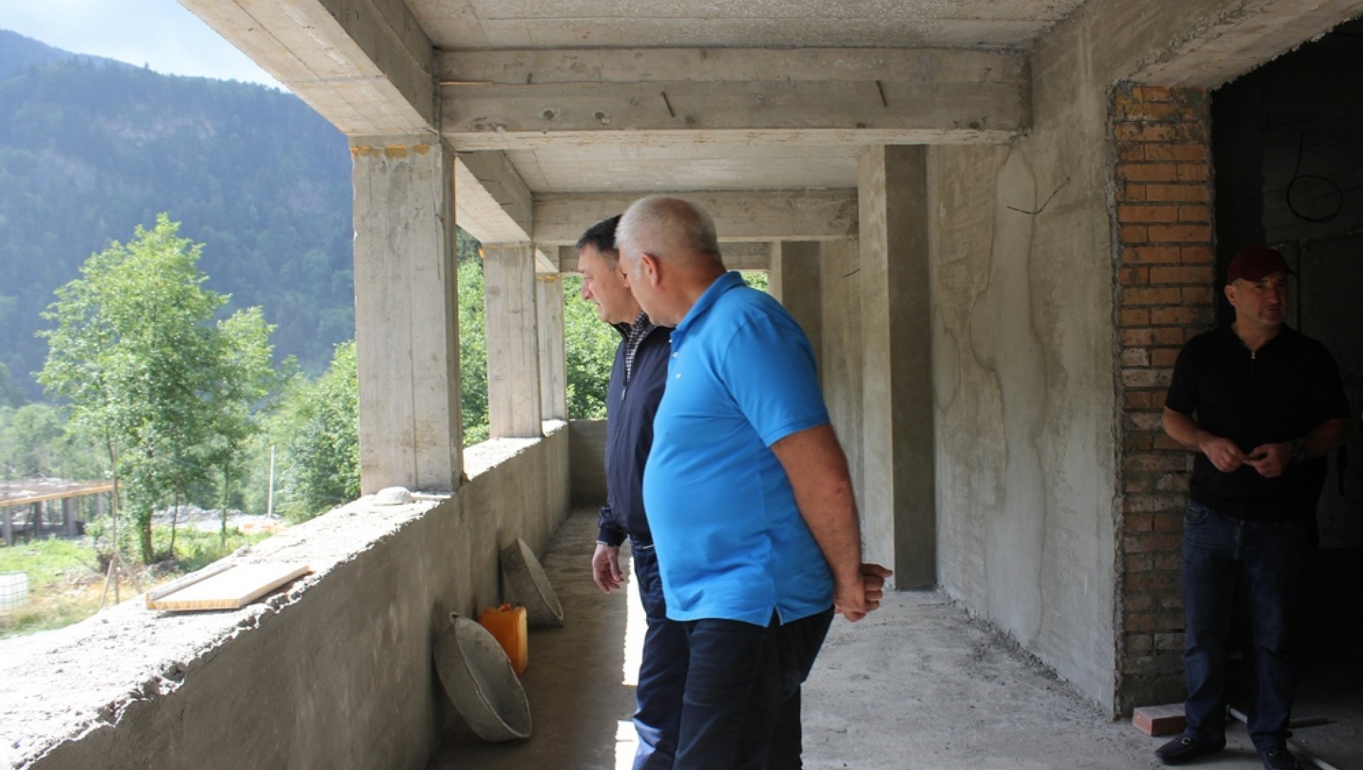 Председатель Правительства Константин Джуссоев и Министр строительства, архитектуры и ЖКХ Эдуард Дзагоев осмотрели в Дзауском районе строящиеся объекты Инвестпрограммы содействия соцэкономразвитию РЮО на 2020-2022 годы, в частности, детский лагерь в селении Мзиугом.
