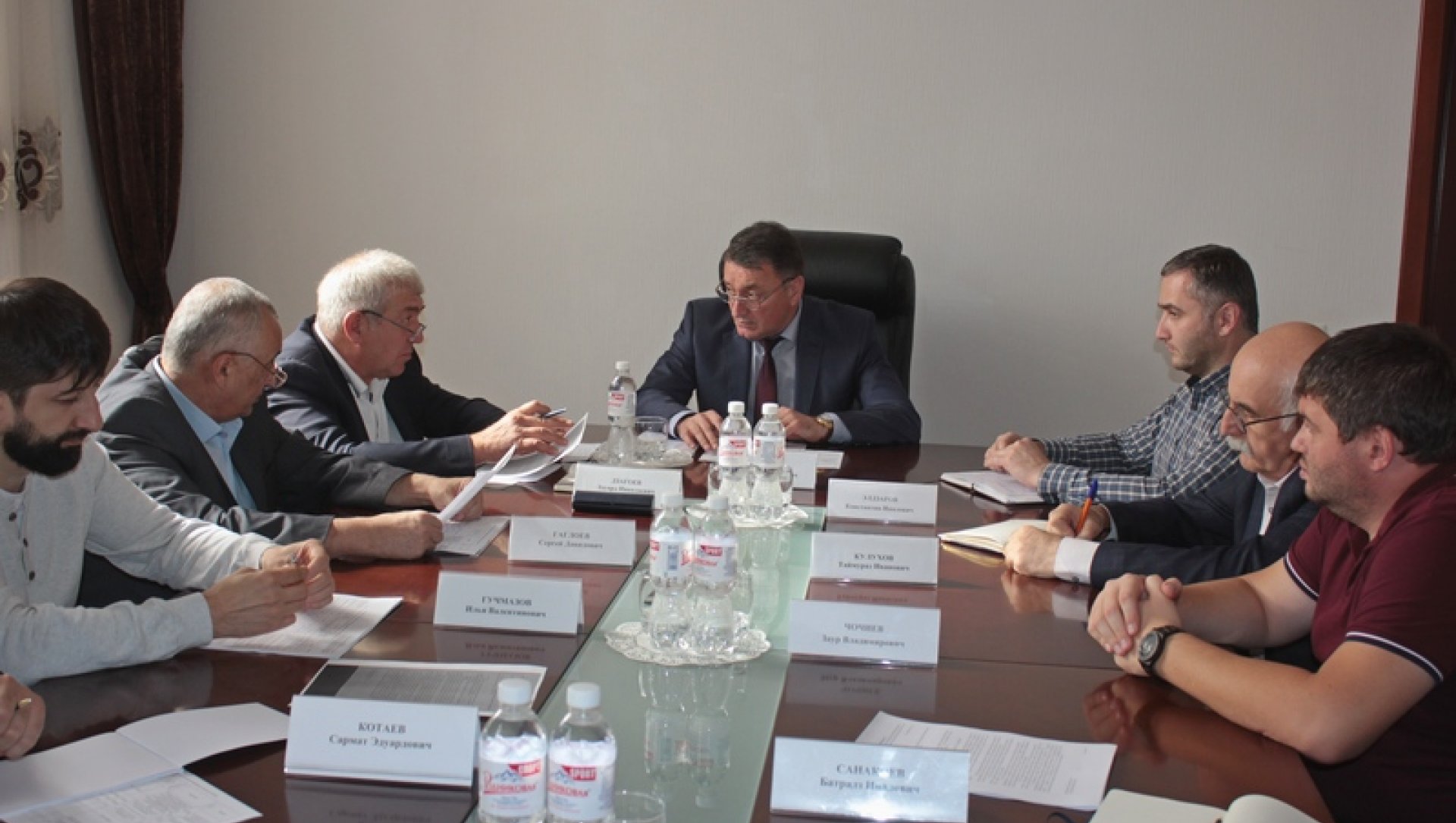 В совещании приняли участие заместители Министра строительства, архитектуры и ЖКХ Сергей Гаглоев и Илья Гучмазов, руководители управлений Аппарата Правительства, ГУПов, строительных организаций.