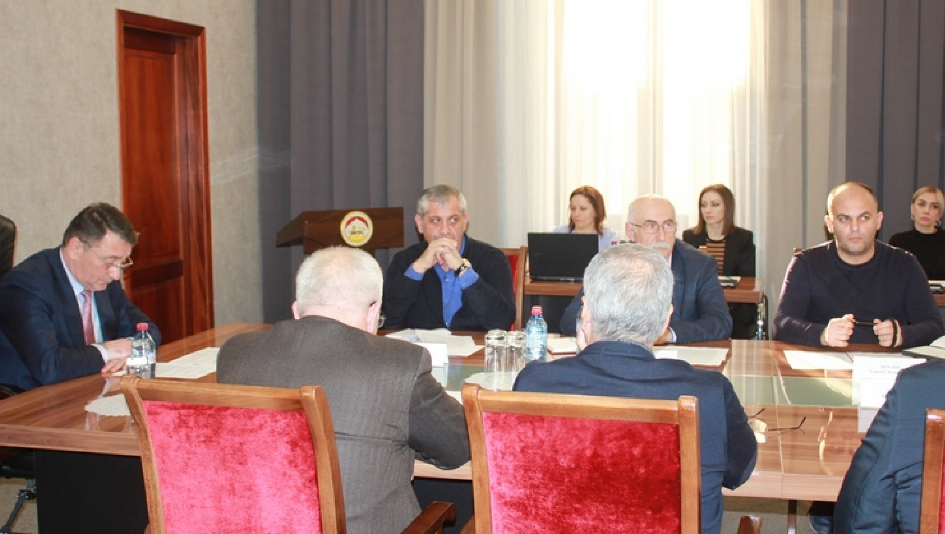 В совещании приняли участие Министр строительства, архитектуры и ЖКХ Эдуард Дзагоев, его заместитель Сергей Гаглоев, глава Администрации города Цхинвал Гено Каджаев, представители подрядных организаций и руководители ГУПов.