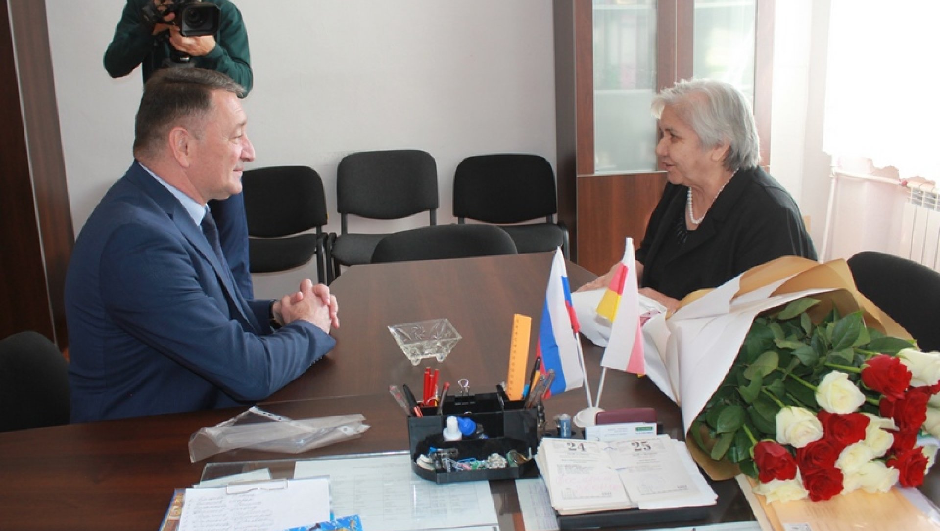 Перед началом торжественной части глава Правительства встретился с директором школы Юзой Собаевой, с которой обсудил общешкольные темы, пообещав помочь в решении наиболее актуальных вопросов.