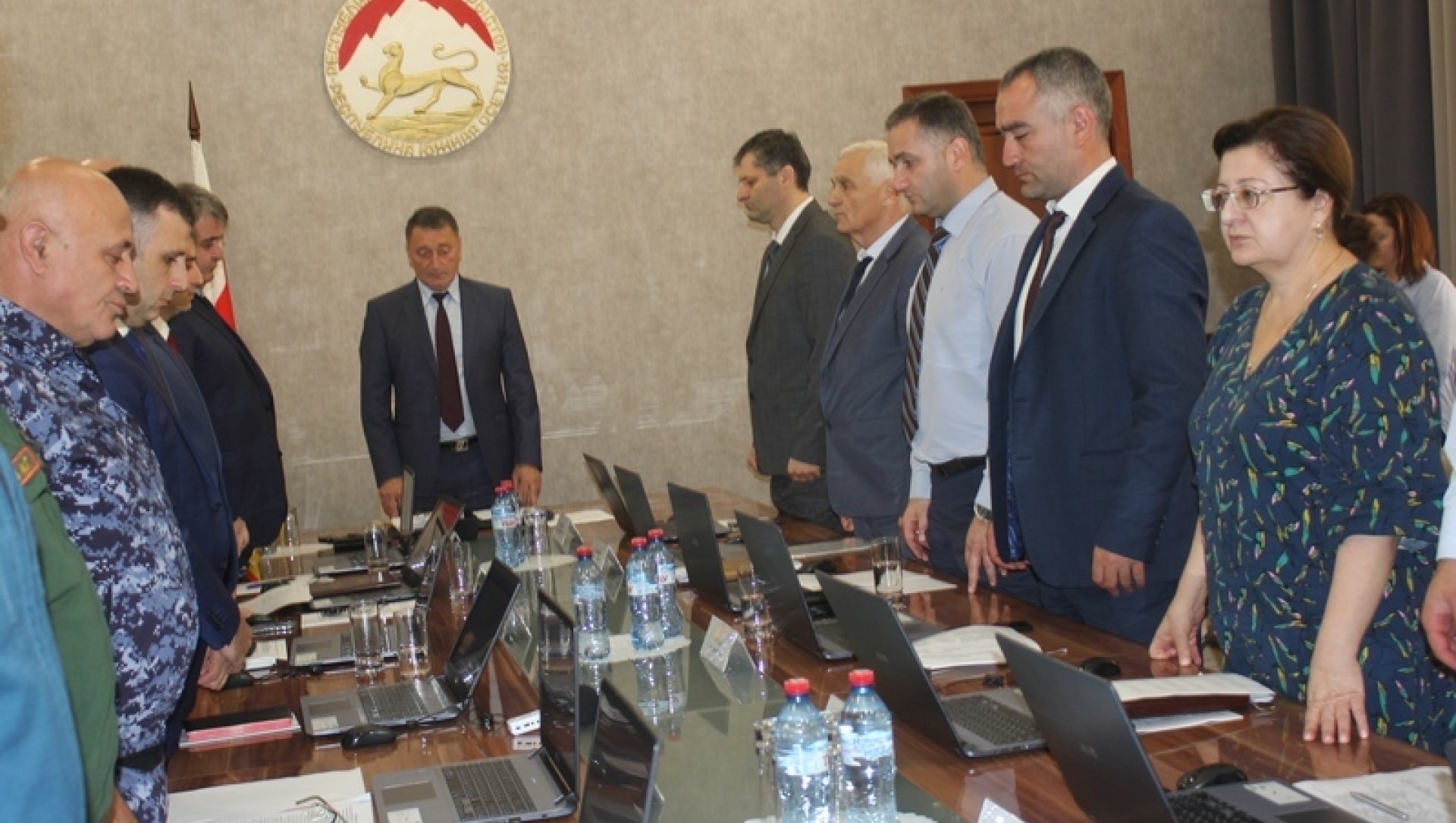 Перед началом работы члены Правительства и присутствующие почтили минутой молчания память погибших в войне августа 2008 года.