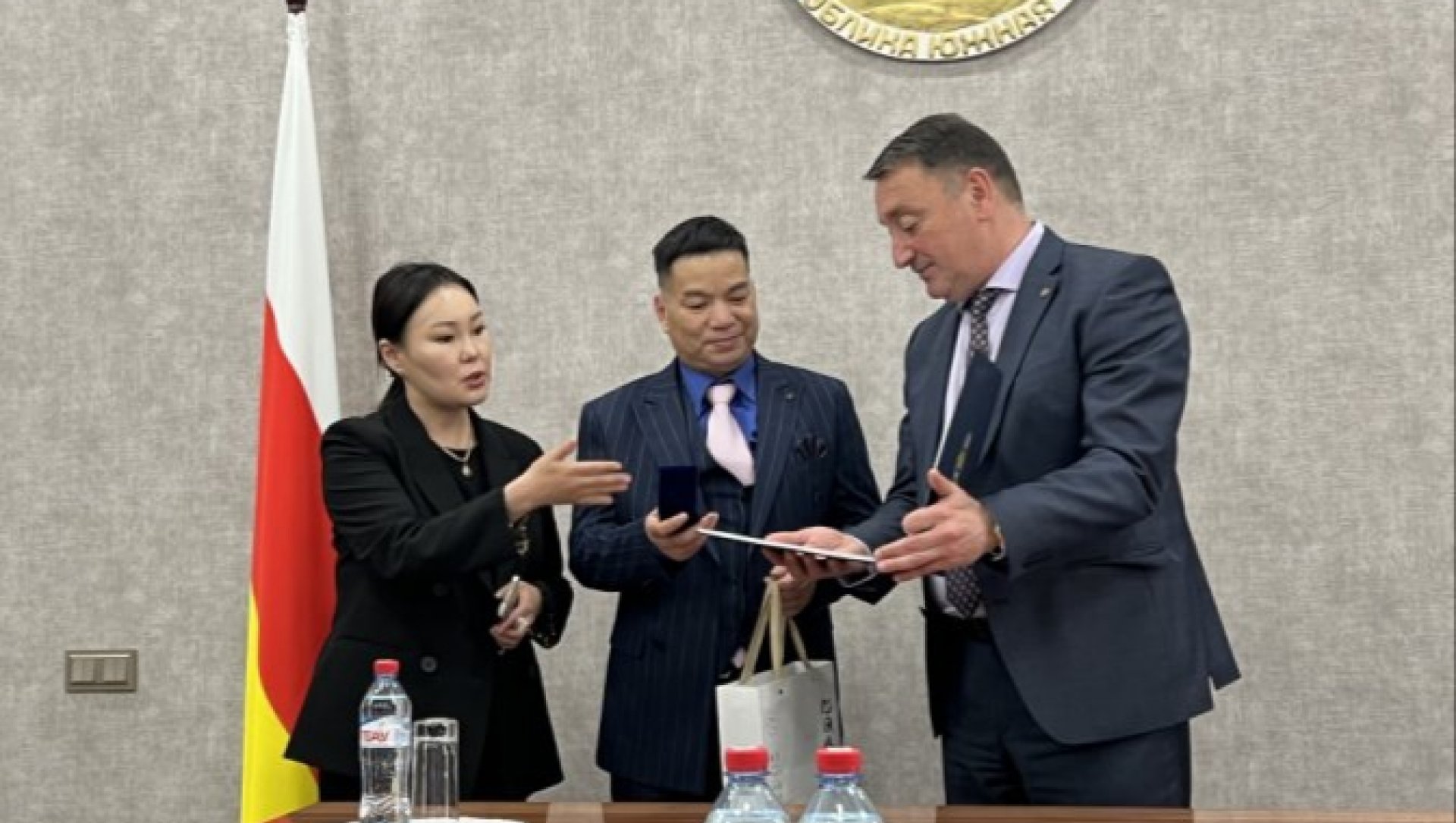 Председатель Правительства Константин Джуссоев встретился с президентом китайской компании «Fujian Tianrun Yongshun Supply Chain» У Кэгуаном, который приехал в республику по договоренности с главой группы компаний «Стройпрогресс» Альбертом Джуссоевым.