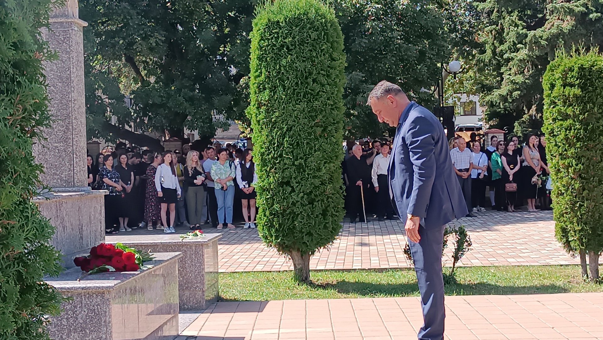 Руководство республики, представители министерств и ведомств, общественности возложили цветы к памятнику «Скорбящий Ангел» перед храмом Рождества Пресвятой Богородицы.