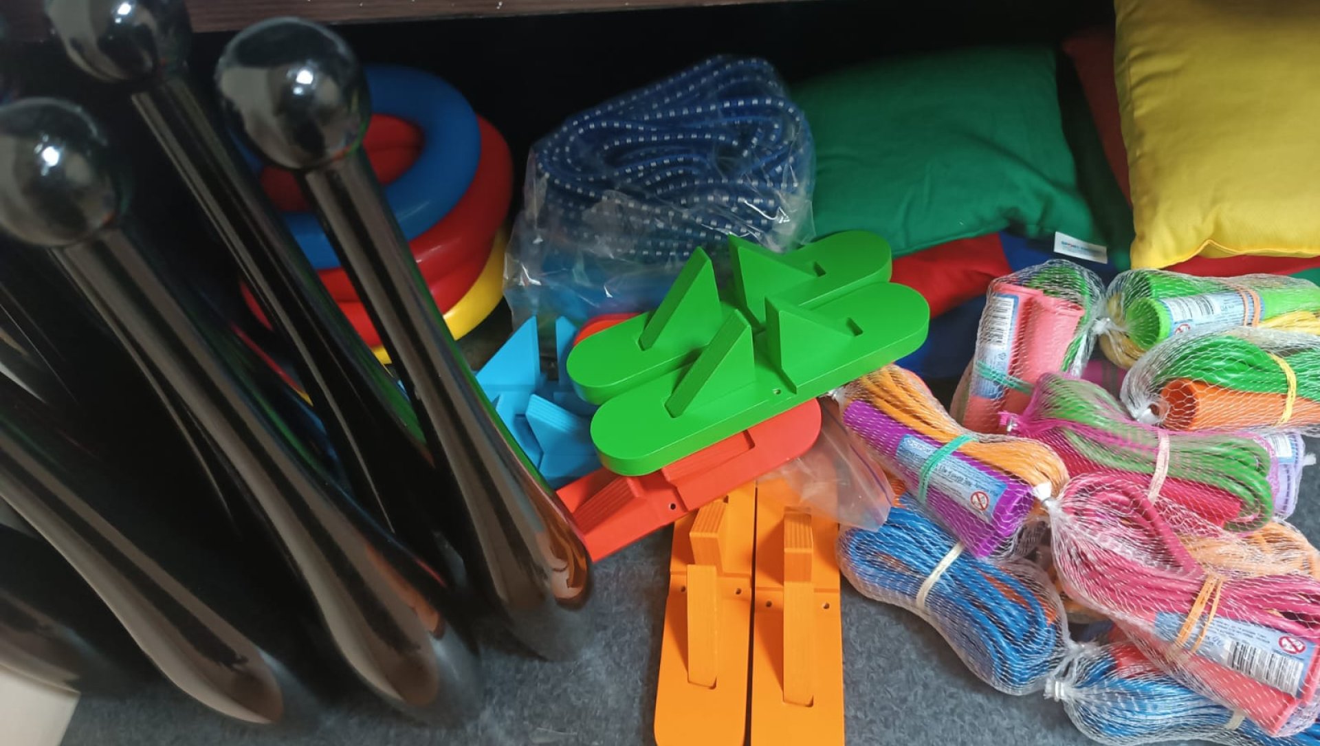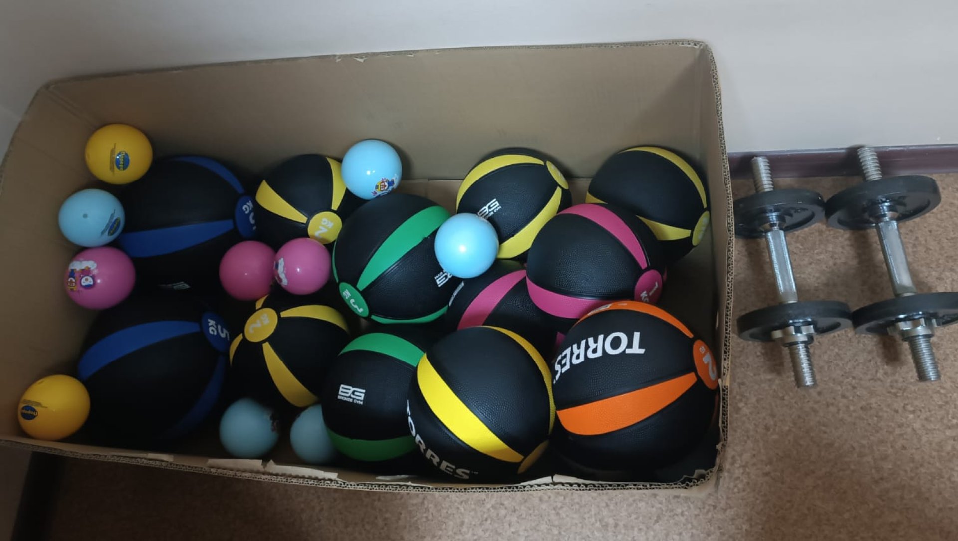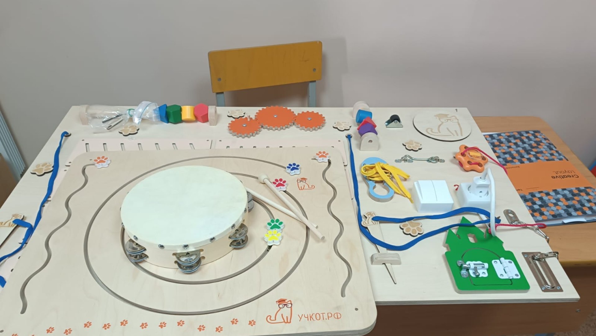 В состав комплексного оборудования вошли гантели, игровые и массажные мячи, сухой бассейн, батут, развивающие тактильные наборы и многое другое.