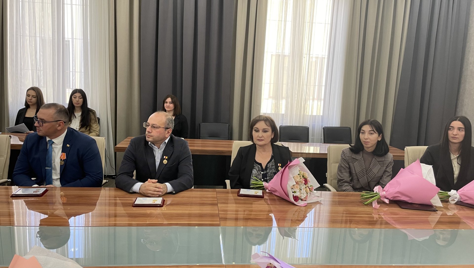 От имени Президента почетные грамоты и медали «В ознаменование 15-летия Победы в Отечественной войне народа Южной Осетии» получили работники экономического блока министерств экономического развития и здравоохранения и других организаций республики.