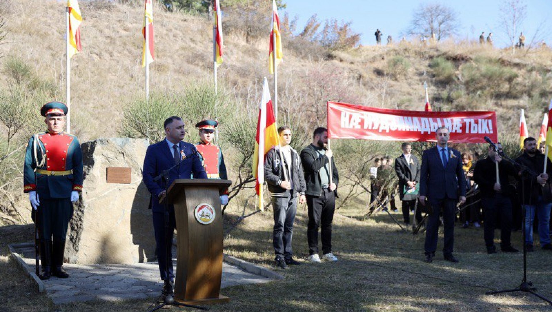 Далее стартовало торжественное шествие к месту противостояния защитников города с многотысячной толпой грузинских националистов. В мероприятиях ко Дню мужества и народного единства приняли участие более двух тысяч человек.