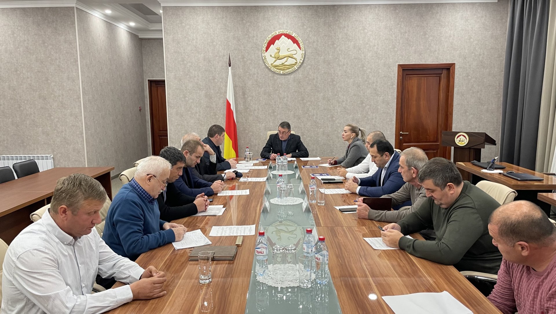 Председатель Правительства Константин Джуссоев провел заседание штаба по вопросам реализации Инвестпрограммы 2024 года, в котором приняли участие Министр строительства, архитектуры и ЖКХ Заур Чочиев, Глава Администрации города Алан Габараев, председатель Комитета промышленности, транспорта и энергетики Ацамаз Кабисов, и.о. председателя Комитета по строительству и эксплуатации автомобильных дорог Алан Багаев и руководитель Аппарата Правительства Алина Парастаева.