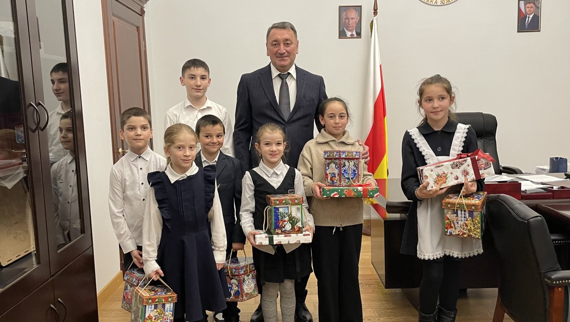 Председатель Правительства Константин Джуссоев исполнил новогоднюю мечту девятерым детям, принявшим участие в благотворительной акции «Елка желаний».