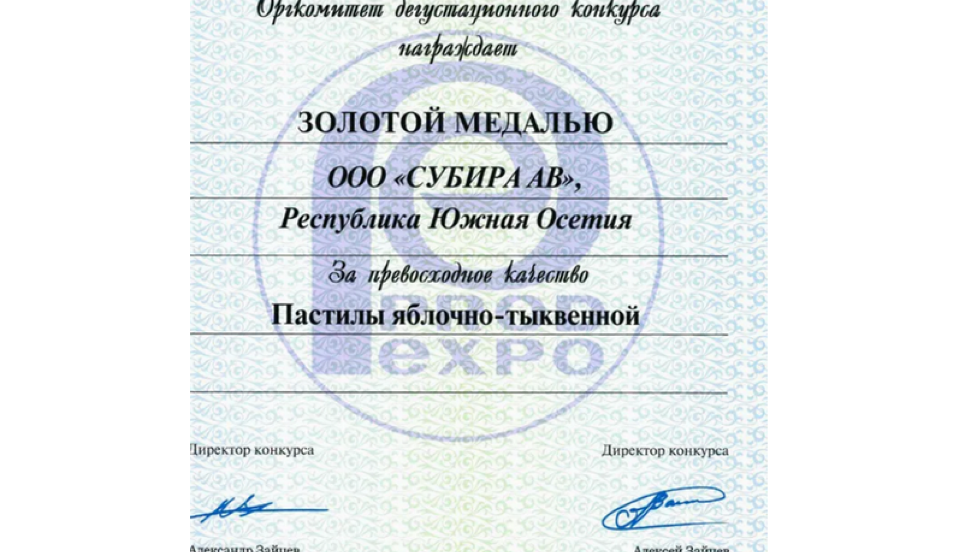 За превосходное качество предприятие «Субира АВ» получило золотую медаль на международной выставке «Продэкспо-2025».