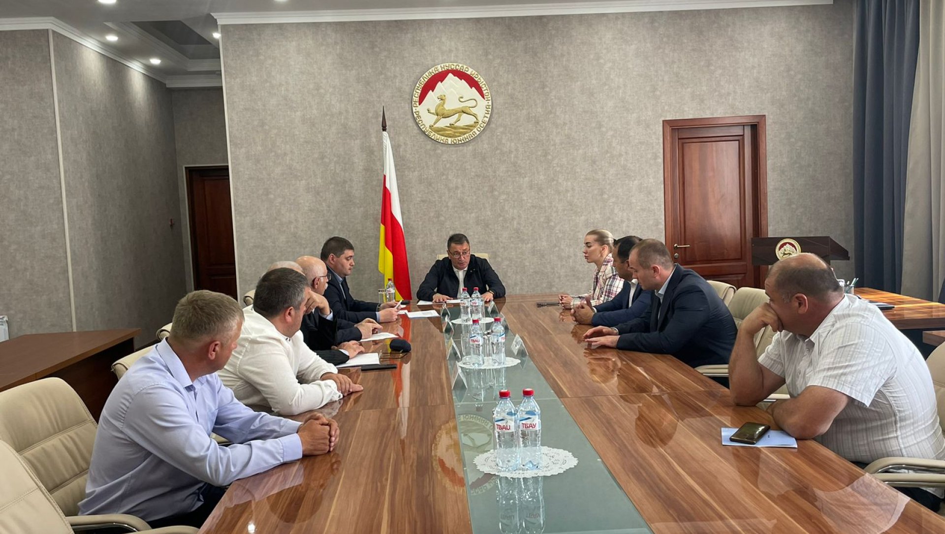 Председатель Правительства Константин Джуссоев провел заседание штаба по вопросам реализации Инвестпрограммы 2025 года, в котором приняли участие Министр строительства, архитектуры и ЖКХ Заур Чочиев, руководитель Аппарата Правительства Алина Парастаева, председатель Комитета промышленности, транспорта и энергетики Ацамаз Кабисов, Глава Администрации города Алан Габараев, Председатель комитета экологического, технологического и строительного надзора Таймураз Кулухов и другие.
