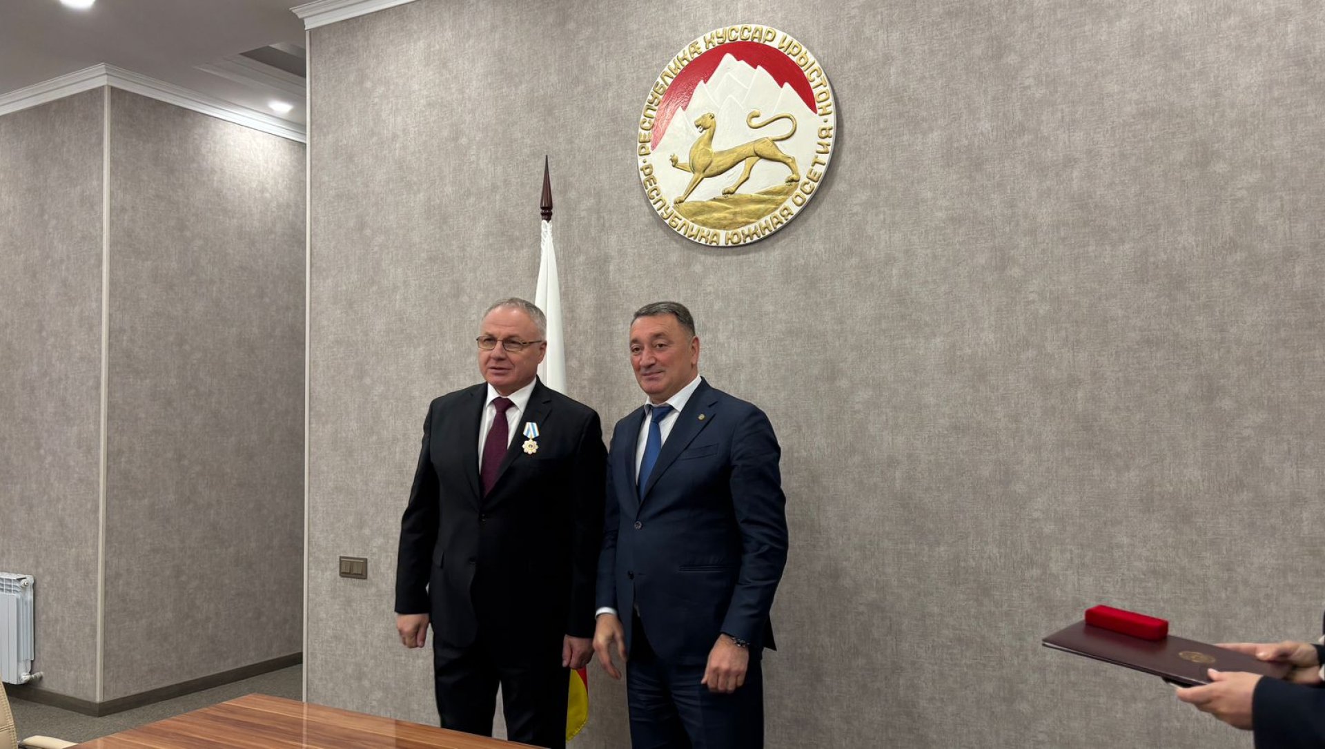 От имени президента Алана Гаглоева Глава Правительства вручил членам делегации МВД РФ государственные награды.
