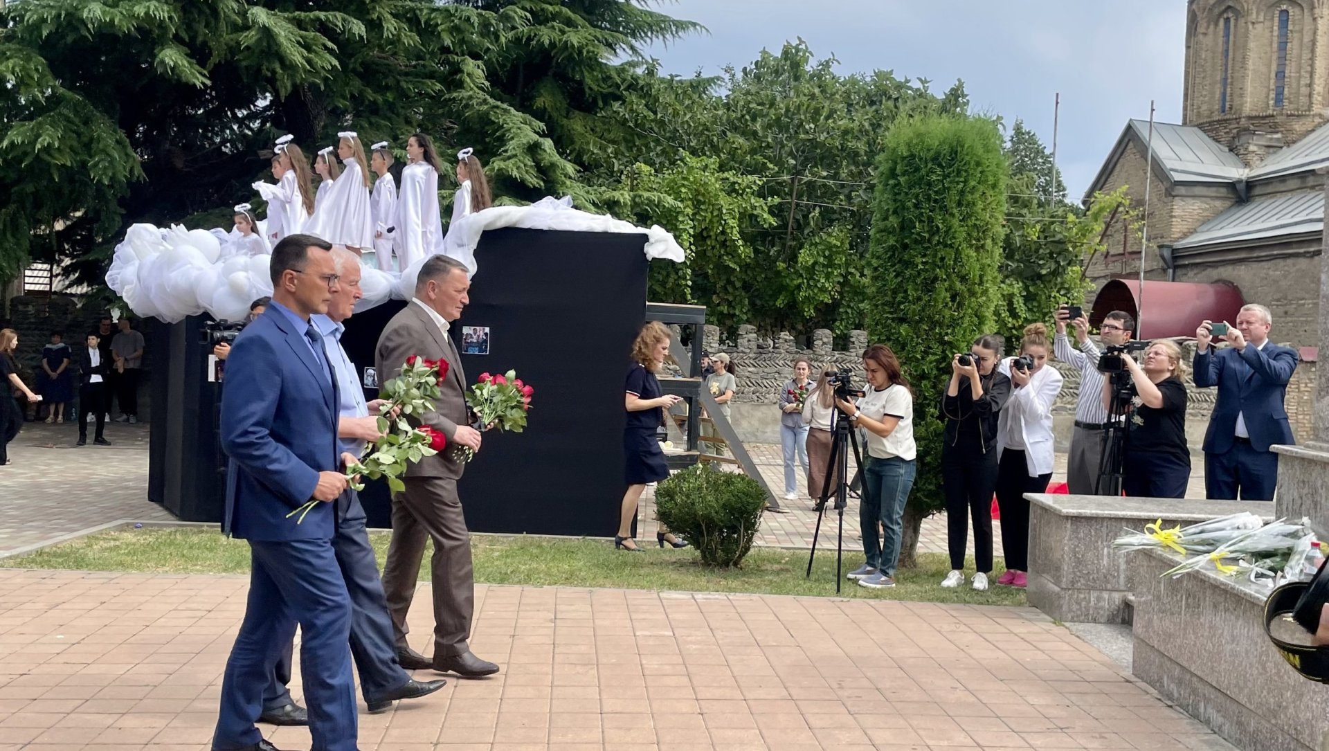 Высшие должностные лица республики, сотрудники различных министерств и ведомств, депутаты Парламента, а также представители общественных организаций, студенты и учащиеся школ возложили цветы у монумента «Скорбящий Ангел», расположенного перед храмом Рождества Пресвятой Богородицы.