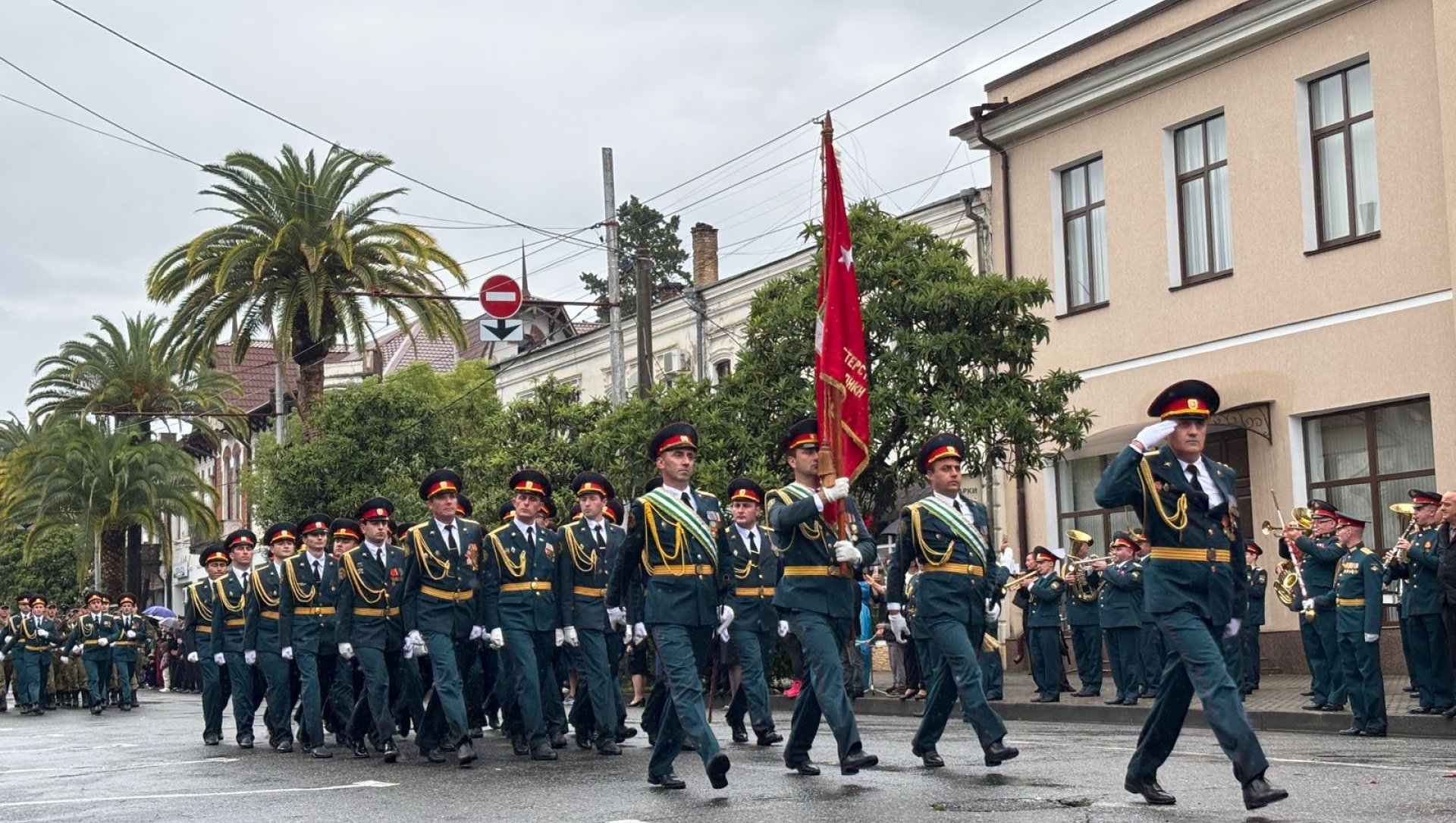 В Сухуме на площади Свободы прошел военный парад в честь Дня Победы и Независимости Абхазии. В торжественном шествии приняли участие более 900 человек.