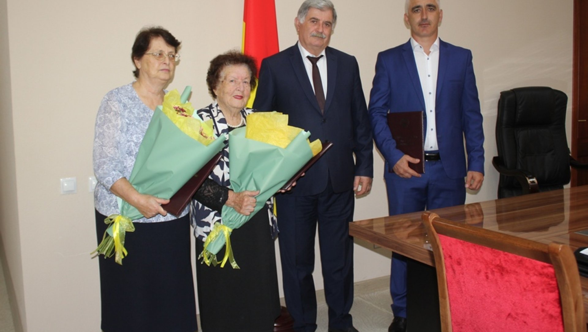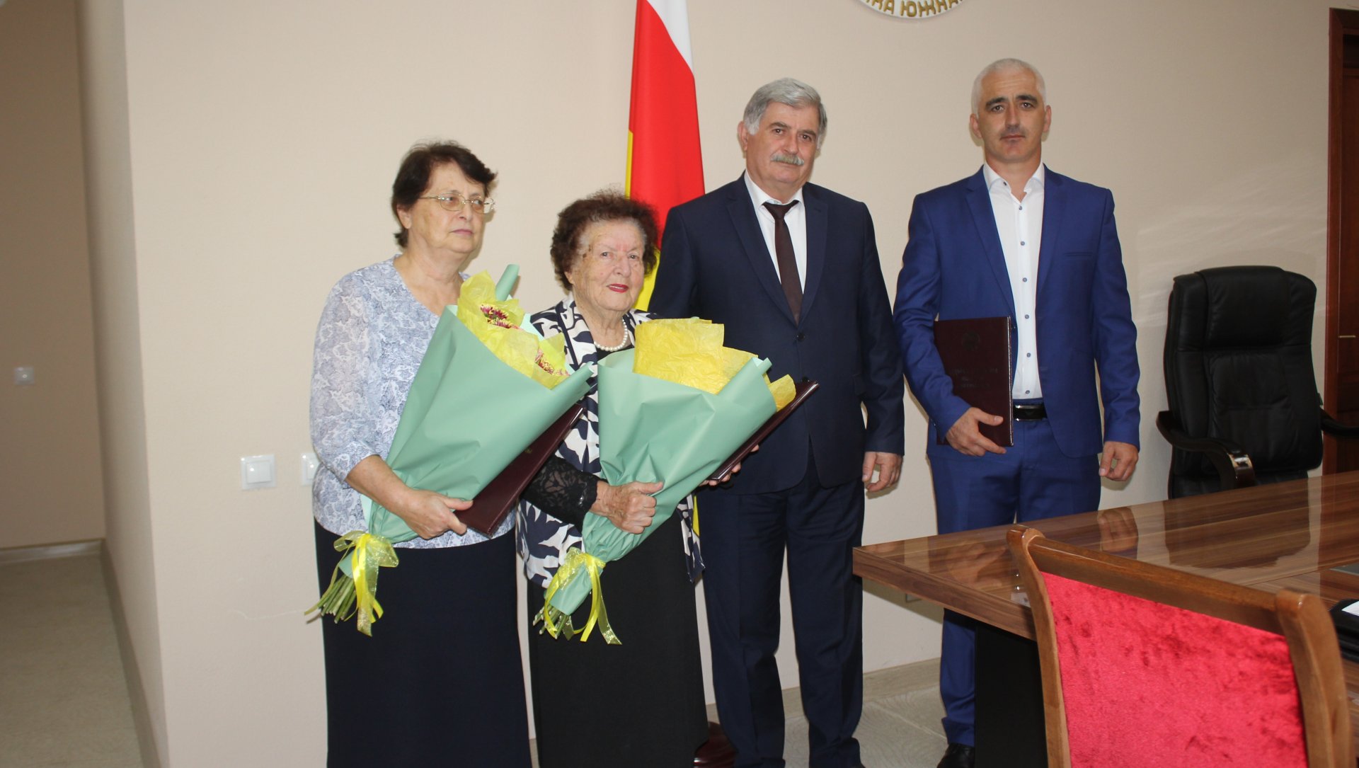 Почетные грамоты Правительства Республики Южная Осетия вручены врачу-терапевту ГБУЗ «Медико-социальный центр» Валиевой Лидии Спиридоновне, советнику-консультанту секретариата МИД Валиевой Заире Владимировне, а также директору ГУП «Управление ЖКХ при Администрации Дзауского района» ЦховребовуТамерлану Валериановичу.