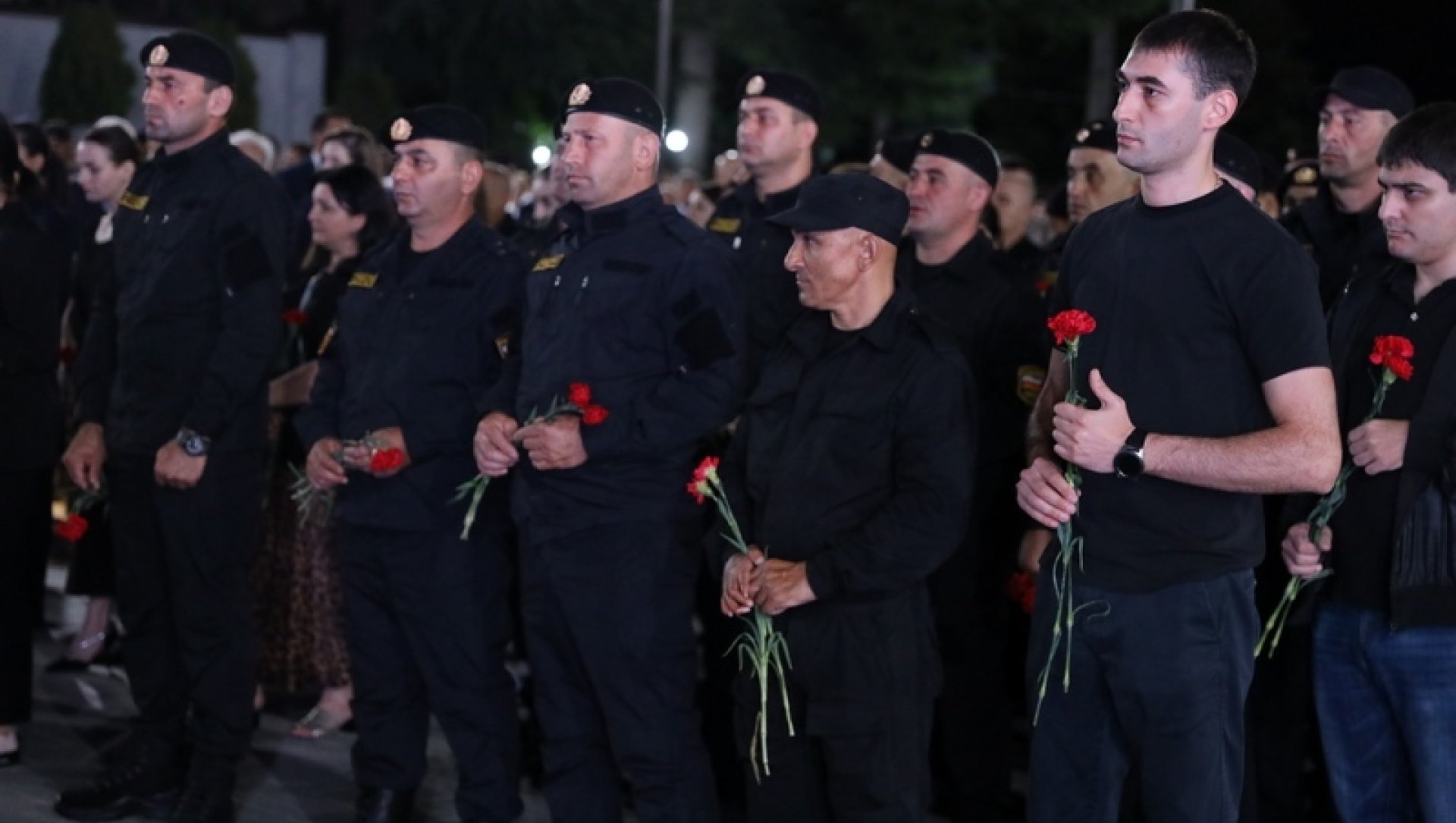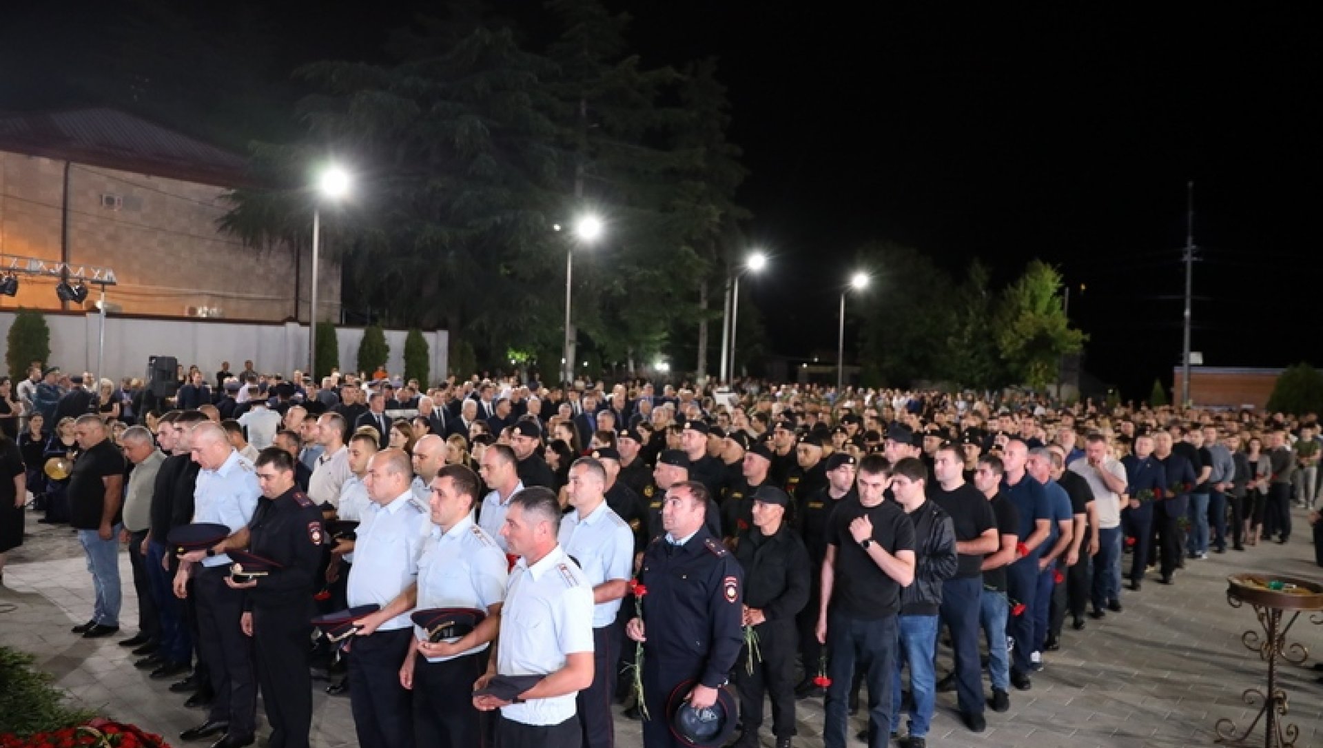 Траурная церемония у мемориального комплекса «Защитникам Южной Осетии»
